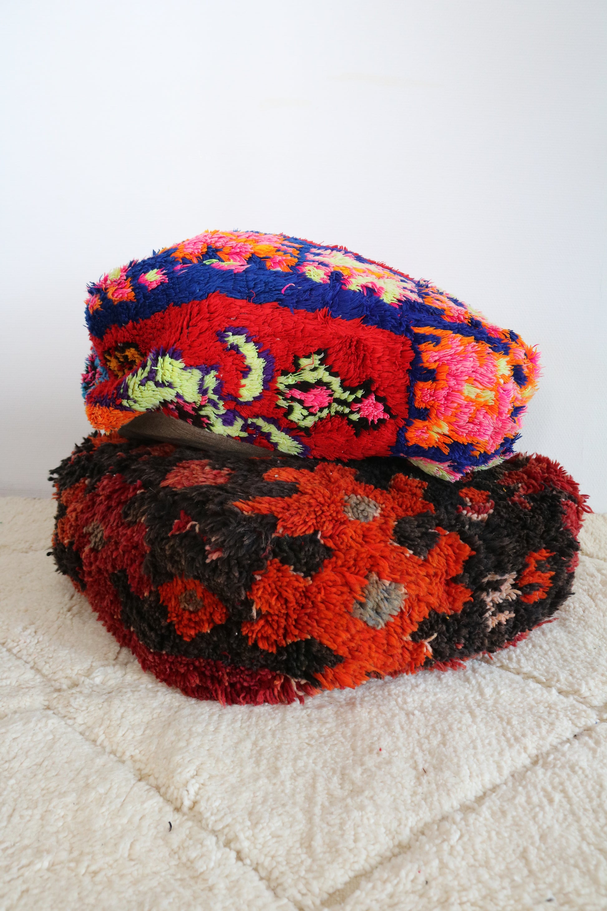 Geef je interieur een upgrade met een Marrokaans poef. Stuk voor stuk zijn alle Berber en Boujaad poefen uniek en handgemaakt in Marokko. Zorgvuldig uitgezocht tijdens een van onze reizen in het Atlasgebergte. Verkrijgbaar in verschillende kleuren en stijl, voor elk interieur een passend zitkussen.